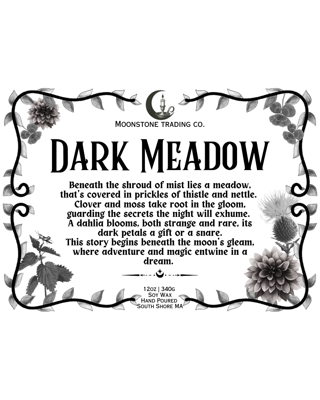 A scent for the wonderers of wild places. Dark meadow takes you on a journey through a misty meadow at night. A story of beauty and resilience because you never know what you might find on your adventures. Thorns and thistles? Or a beautiful flower? The duality of both beautiful and dangerous things is explored through a dream like lyrical poem to describe the scent of this candle.